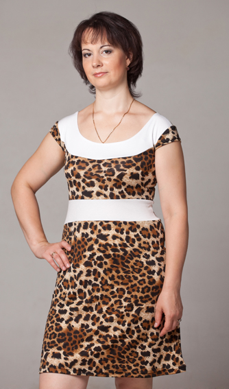 отделкой лифа и талии из гладкокрашенной вискозы. Укороченный рукав.